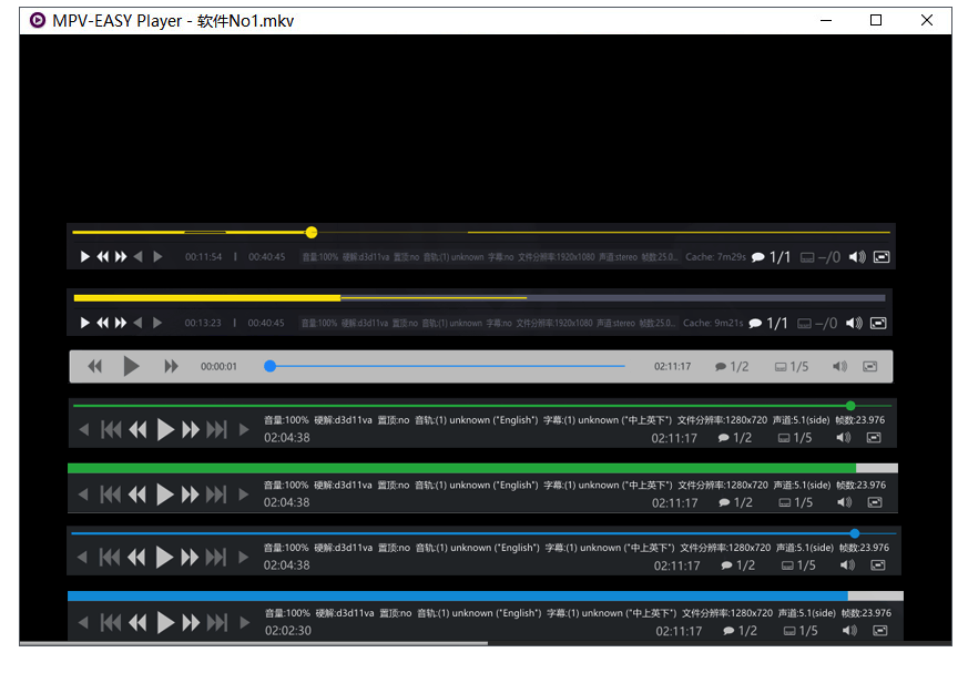 MPV 播放器带有基于 OpenGL 、 Vulkan 和 D3D11 和多种解调器支持,能够播放超高清的影片,具有多种让发烧友爱不释手的功能,配置灵活、性能优秀,包括使用流行的高质量算法进行视频缩放、色彩调整、帧数管理、插值、 HDR 等。