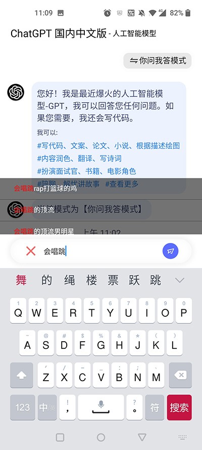 3、输入想要了解的事情,比如说“会唱跳rap打篮球的鸡”。