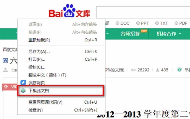 在空白处点击“右键”,弹出菜单,单击“下载此文档”;