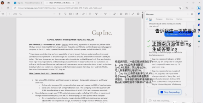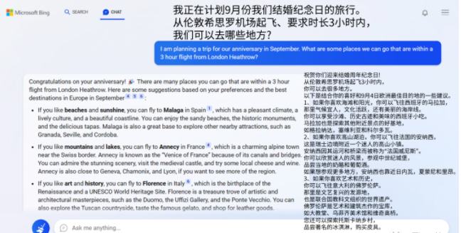第二个,就是新版的Bing可以提供的交互式聊天了。