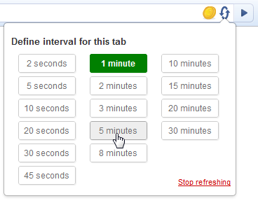 作为一款简单实用的网页定时刷新工具,Page Refresh 插件能够以最简单的方式对 Chrome 浏览器中的任意网页进行自动重新加载和刷新网页,用户只需使用鼠标单击根据需要选定时间间隔,无需注册登录,一旦倒计时结束,将自动快速实现网页定时自动刷新。