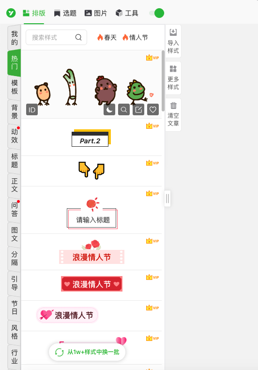 安装完成后,进入公众号的后台编辑页面,就可以看到在左侧的各种编辑模板。