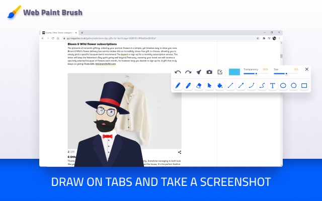 Web Paint brush 插件是一款专业且强大的网页绘画与注释工具,该插件为用户提供了多种实用工具能够在 Chrome 浏览器任意网页进行绘制或者注释,并将其通过截图的形式下载保存至本地,非常易于使用。