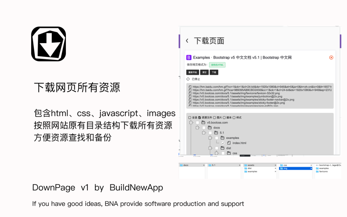下载网页所有资源插件是一款功能强大的网页资源下载器,该插件允许用户在 Chrome 浏览器中对任意网页按照网站原有目录结构下载包含 html 、 css 、 javascript 、 images 等在内的所有资源,以方便资源查找和备份。