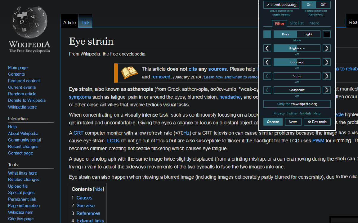 Dark Reader Pro 插件是一款功能强大的网页暗黑模式工具,它能够改变网页的外观颜色,自动生成深色主题,帮助用户在夜间浏览更轻松,可有效降低患计算机眼疲劳和计算机视觉综合征的风险。