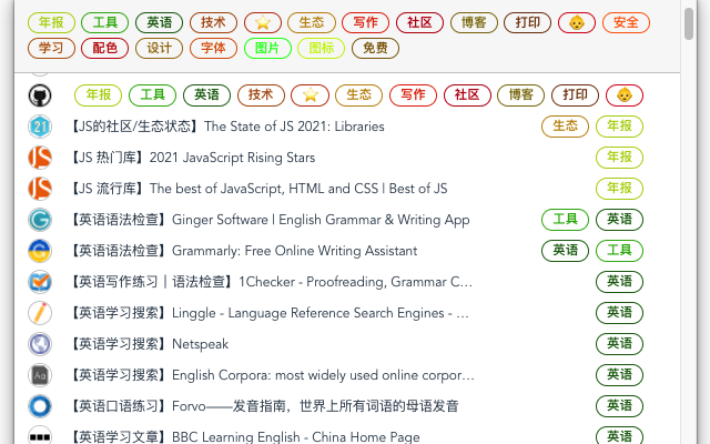 Tag Bookmarks 插件是一款简单实用的网页书签管理工具,该插件允许用户对 Chrome 浏览器中自己所收藏的书签添加标签,能够方便筛选和管理,适合书签重度患者,有效缓解书签焦虑,非常好用。