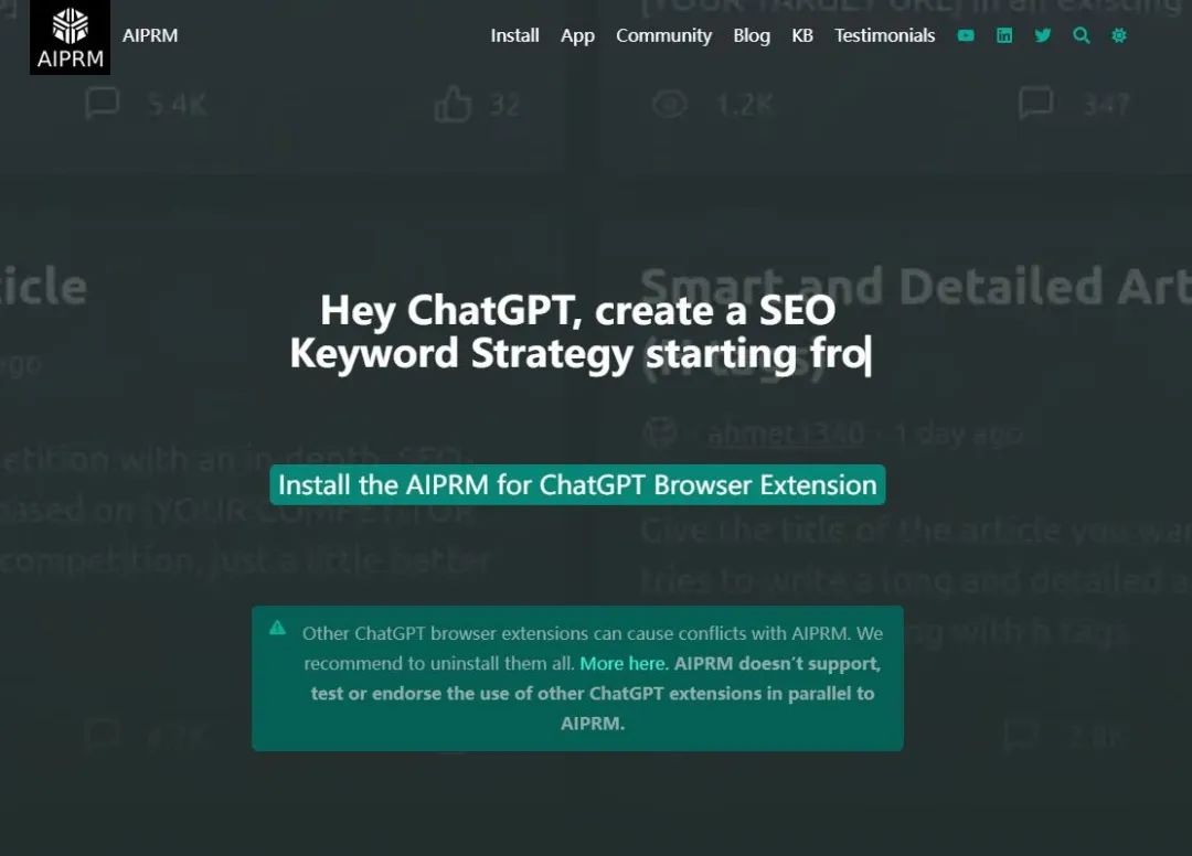 AIPRM for ChatGPT 插件是一款 ChatGPT 精选提示访问工具,该插件为用户提供了专门为 SEO 、 SaaS 、营销和更多 ChatGPT 而设计的精选提示模板列表,可帮助用户优化网站并提高其在搜索引擎上的排名。