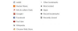 Humble New Tab Page 插件安装完成以后,直接在 Chrome 浏览器中点击打开新标签页,点击【书签栏】可以快速查看已保存的所有书签,点击【 Recent bookmarks 】可以查看最近经常使用的书签,【 Recently closed 】则可以查看最近的浏览历史记录。