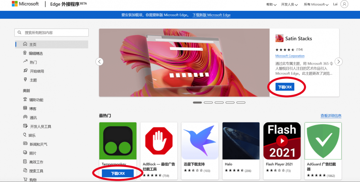 使非 Edge 浏览器,也能从微软扩展商店下载 CRX 文件
