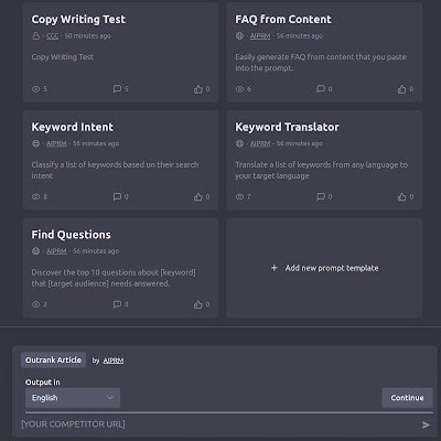 Now, you can save your prompt templates for your use or share them with the community for all to benefit from. As a prompt template author, your name and a link will be very prominently displayed next to the prompt, giving you the opportunity for clicks and recognition.