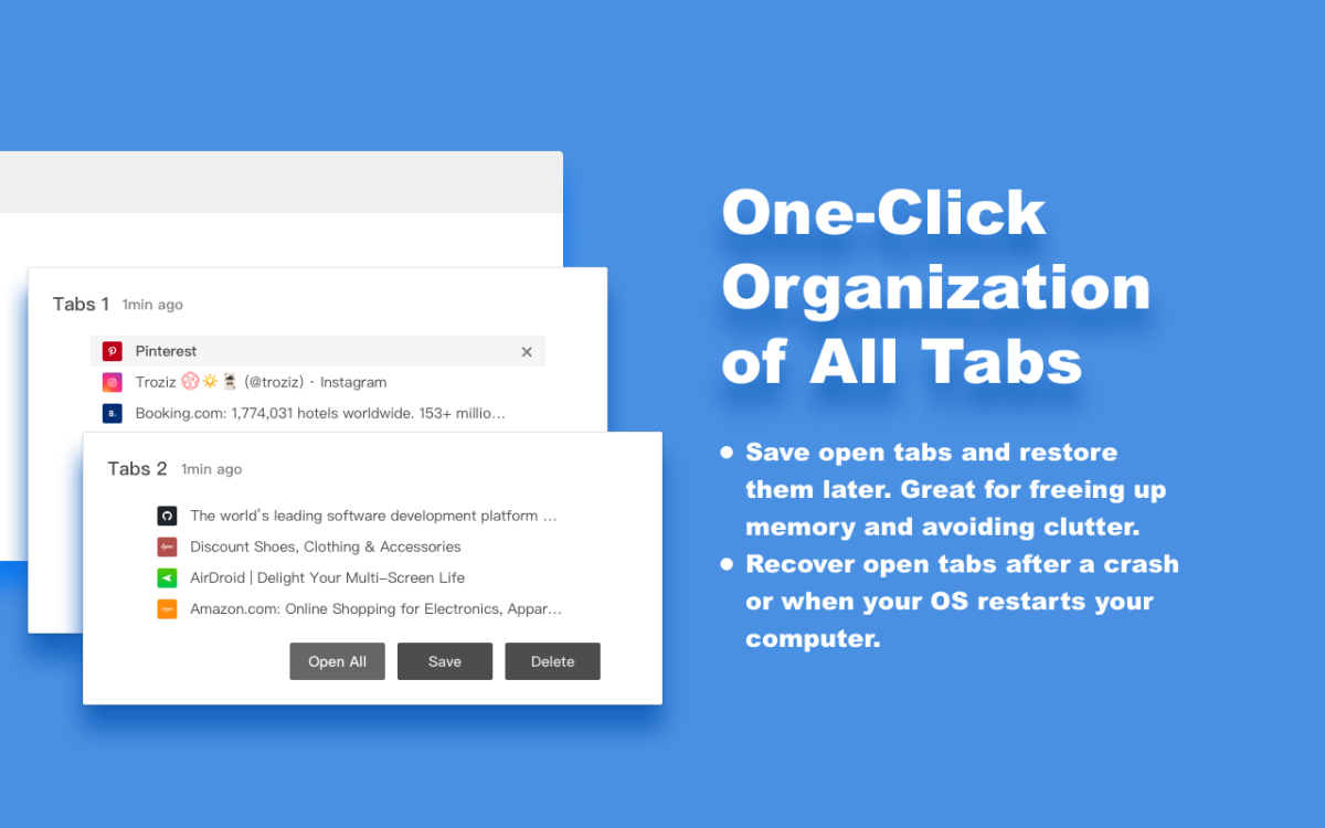 那如何才能有效解决这样的问题?其实,这款 OneTab Plus 插件便可以轻松解决。傻瓜式的操作一秒上手,快速管理所有标签页。