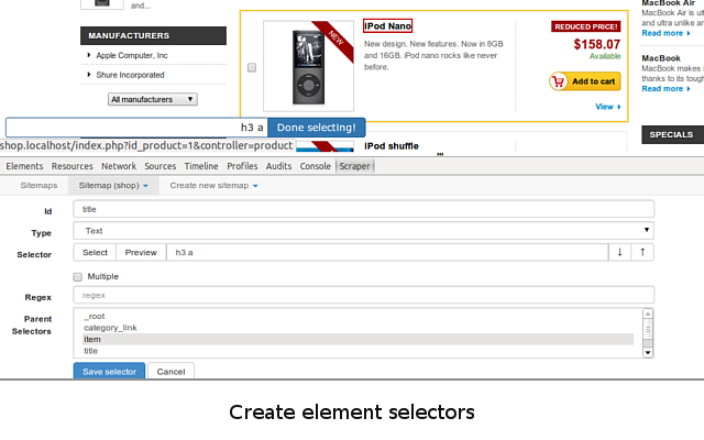 3. Add data extraction selectors to the sitemap;