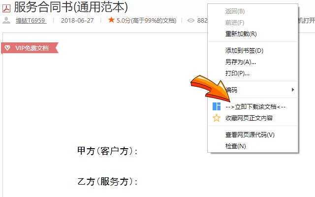 3. 在页面空白处点击右键,然后点右键菜单中的“-->立即下载该文档<--”