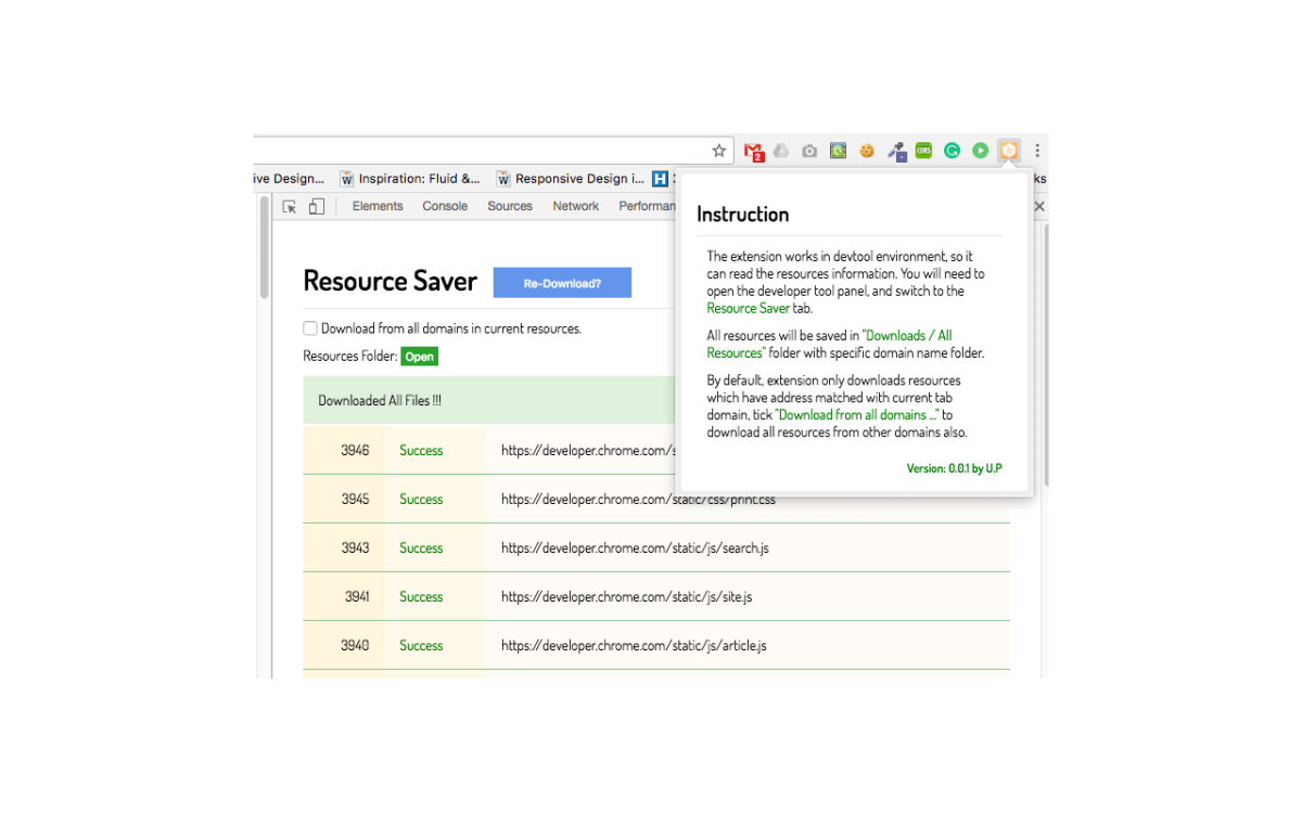 Chrome Extension for one click downloading all resources files and keeping folder structures.