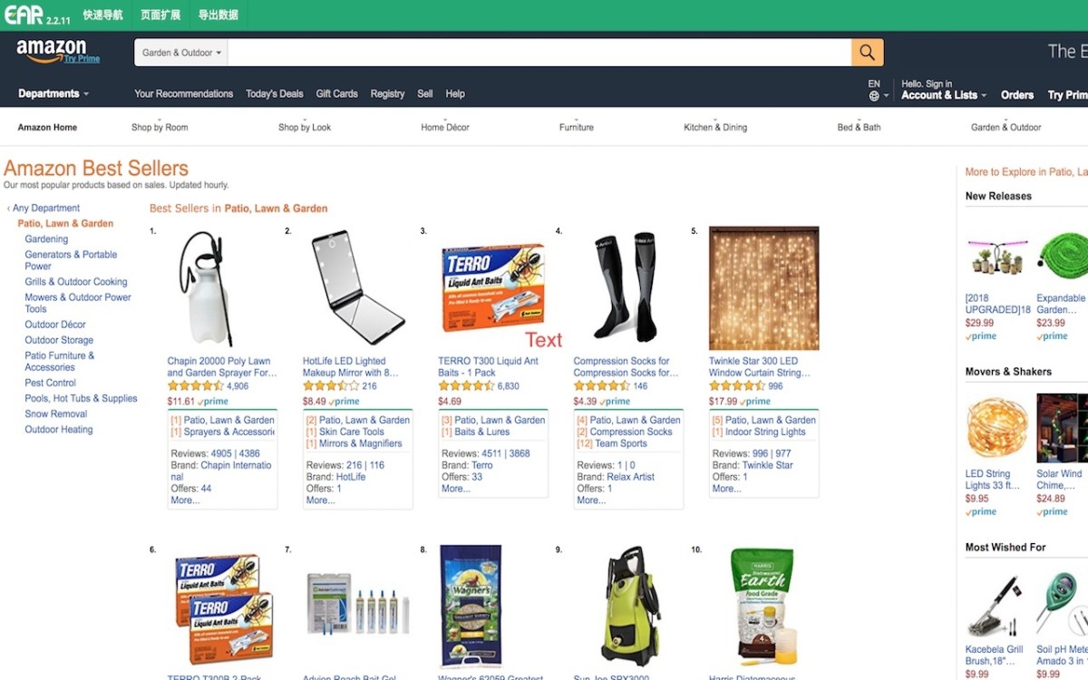 EarData 插件助手插件为亚马逊卖家提供简约的方式收集以及整理 Amazon 网站数据, 利用数据高效并客观的分析市场.