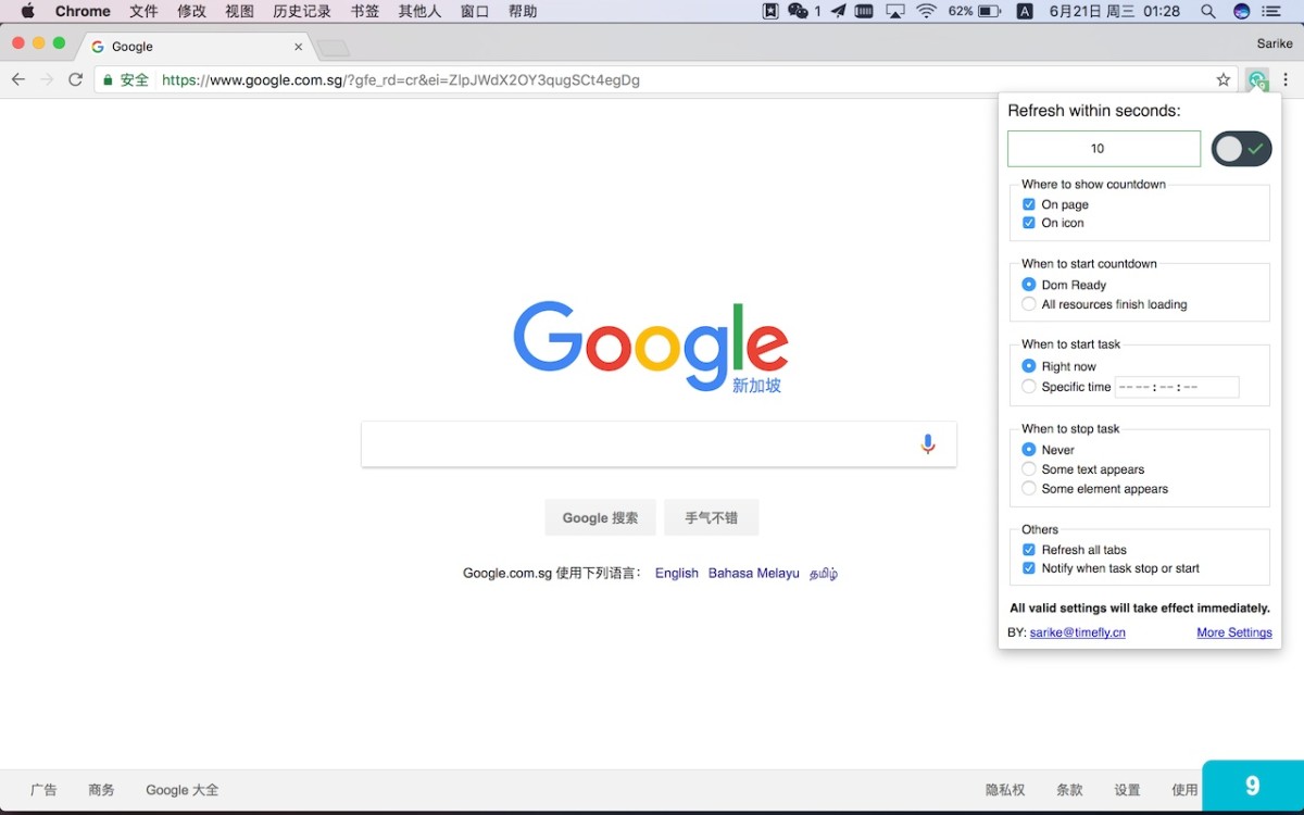 Free Auto Refresh插件,可以自动刷新网页,可以帮助用户轻松实现自动刷新浏览器网页的功能,使用户更加便捷地浏览网页。这对于需要及时获取更新内容的用户或者需要定时刷新网页的用户来说非常有用。