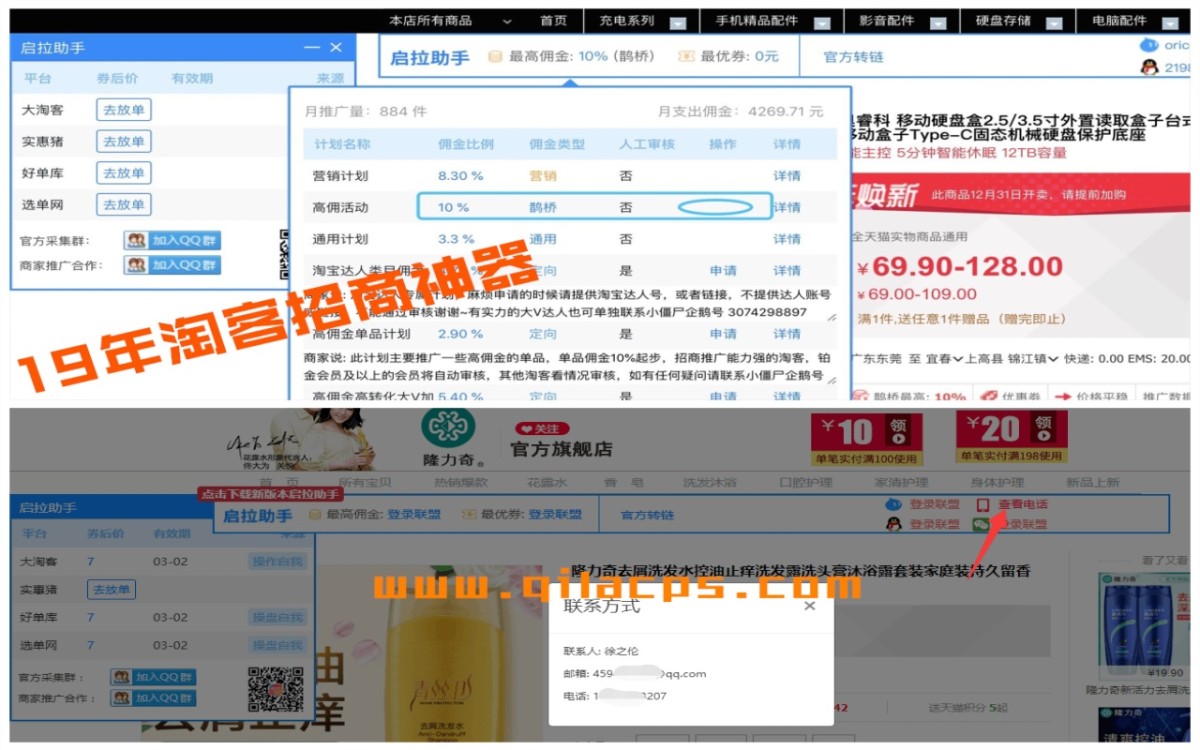 1:启拉助手,淘客从业者必备插件,查询最高佣金一目了然,安装即显示,团长、营销、鹊桥、定向、通用,省事、省心、省力.