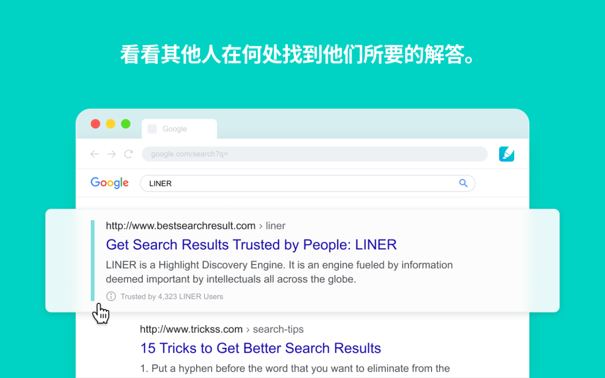 LINER利用整个网路作为资讯来源,然而LINER将仅提供给您受到多数人信赖的搜寻结果。