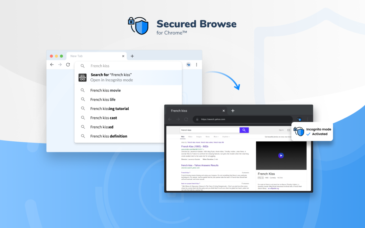 For example, you might look for information about a health issue. This is not something you want to be remembered and personally targeted for advertisements. Add our extension to your browser and when you type personal or sensitive terms in your browser’s address bar, our extension will recognize them and provide you with a quick access link to continue your search in the Incognito mode.