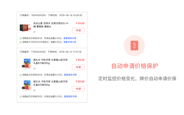 监控最近订单商品的价格变化,在商品降价时自动申请价格保护