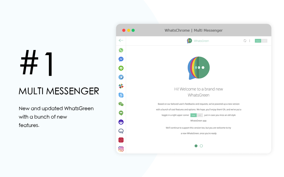 WhatsGreen Multi Messenger是在没有手机的情况下与Chrome浏览器中的朋友聊天的最简单方式。使用WhatsGreen Multi Messenger,您在使用PC时不会再错过任何消息。